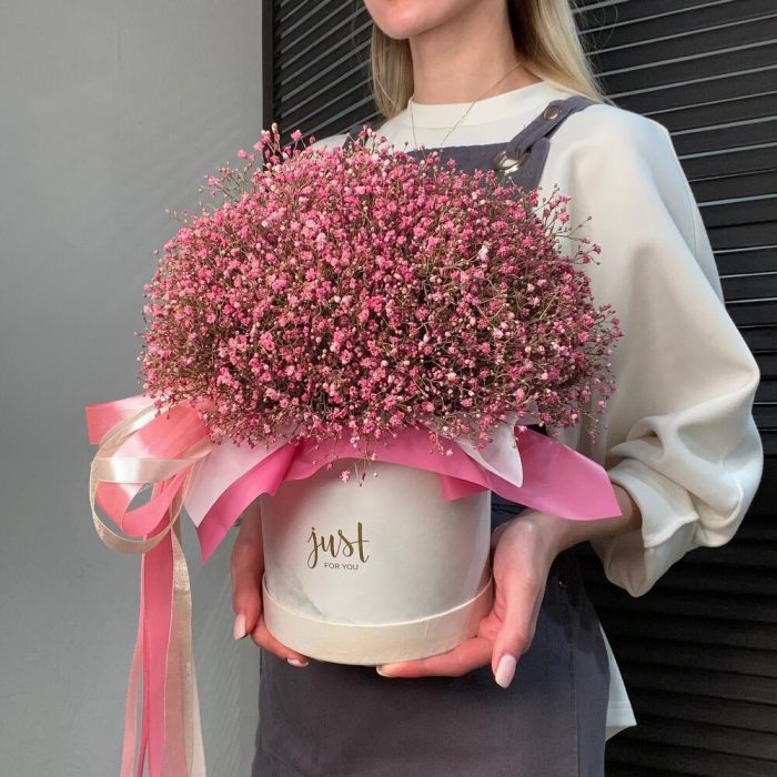 Гипсофила – 7 шт.Коробка шляпная – 1 шт.Оазис флористический – 1 шт.