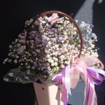“Сиреневый туман” – композиция из гипсофилы в шляпной коробке