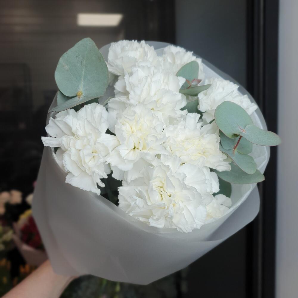 Белоснежные диантусы с эвкалиптом