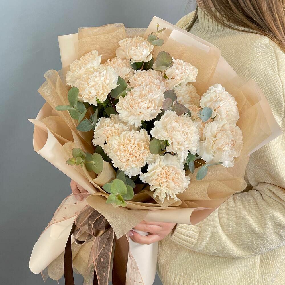 Гвоздики, Лизиантусы, Розы, Тюльпаны