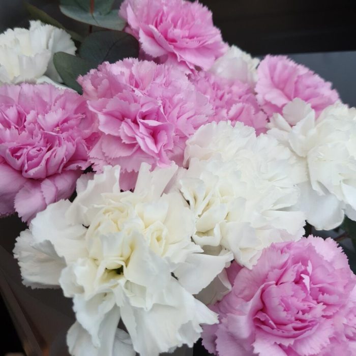 Диантус – 11 шт.Эвкалипт – 3 шт.Упаковка дизайнерская – 2 шт.