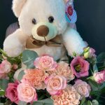 Коробка роз с медведем