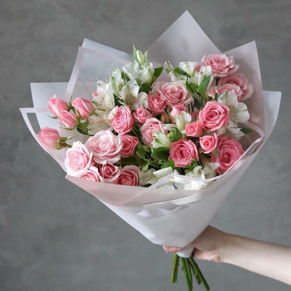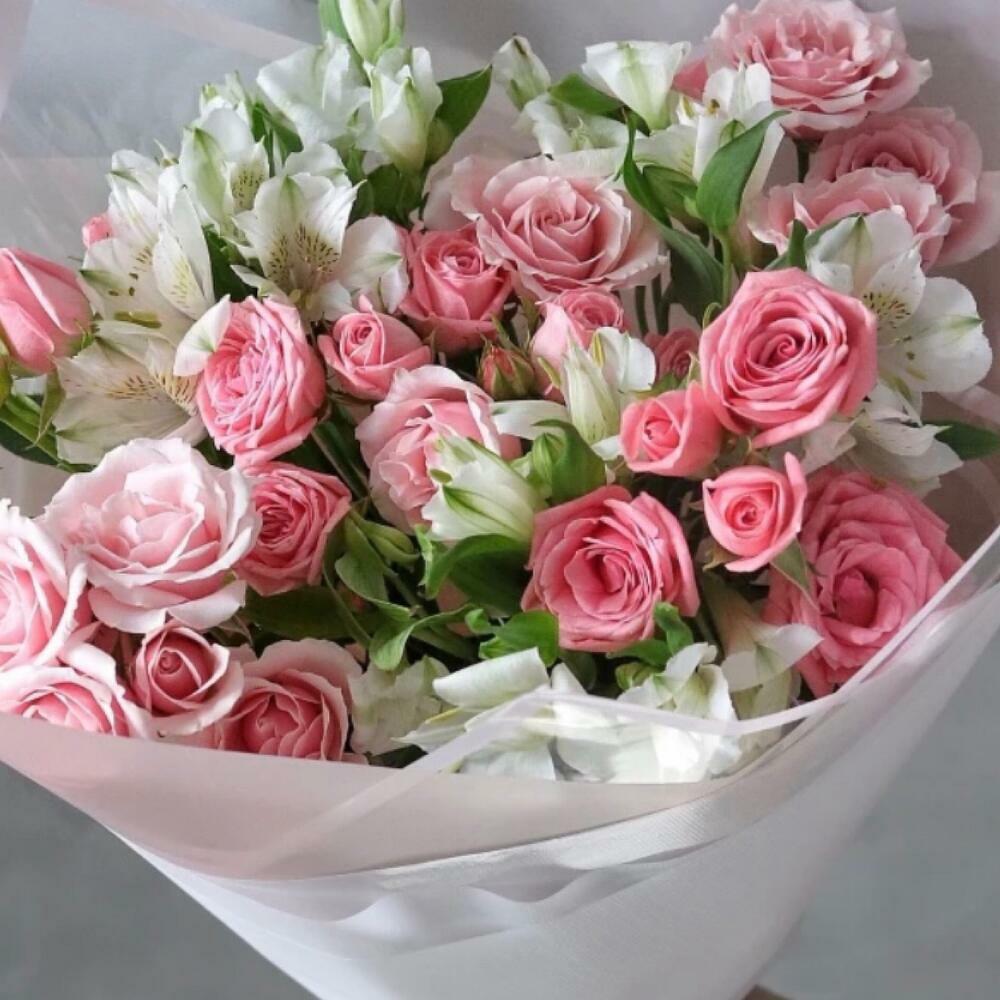 Роза кустовая розовая – 6 шт.Альстромерия – 5 шт.