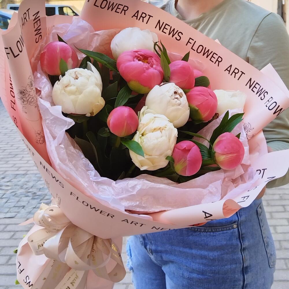 Букет из 13 пионов микс