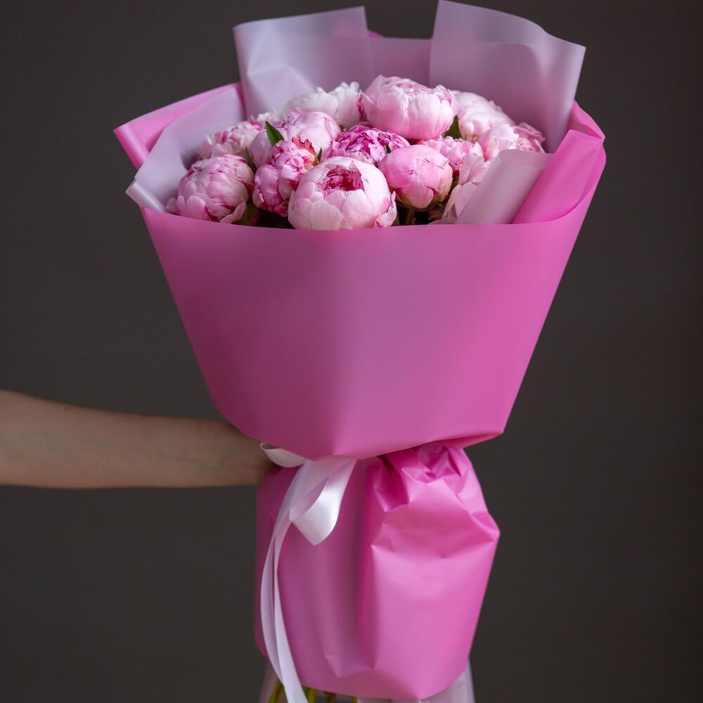 Букет из 15 розовых пионов