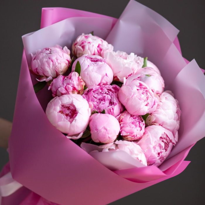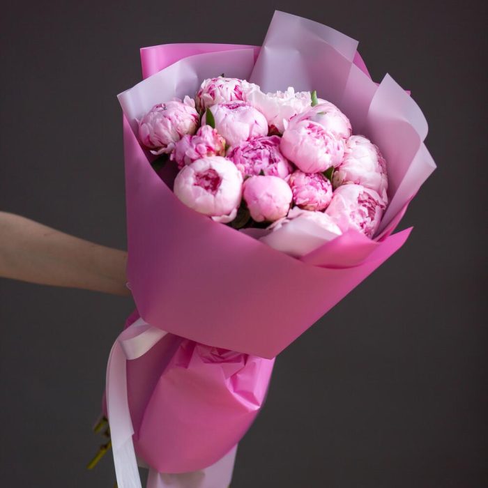 Пион sarah bernhardt – 15 шт.Упаковка матовая – 2 шт.Лента атласная – 1 шт.