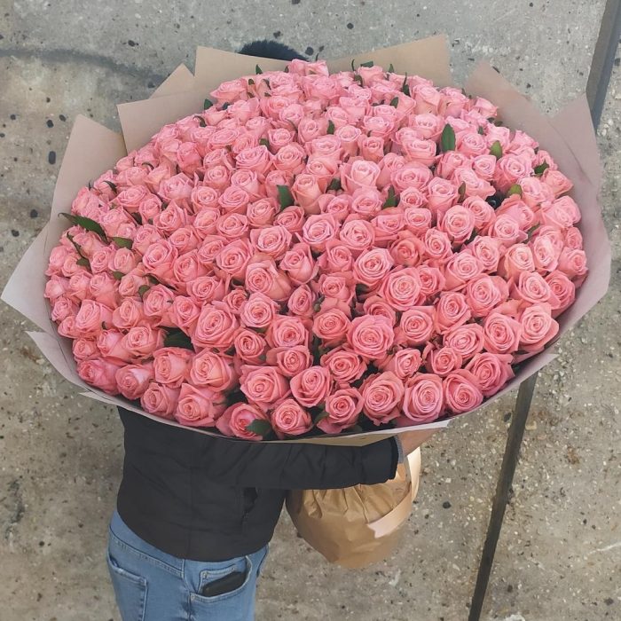Роза анна карина – 201 шт.Крафт упаковка – 6 шт.Лента атласная – 1 шт.