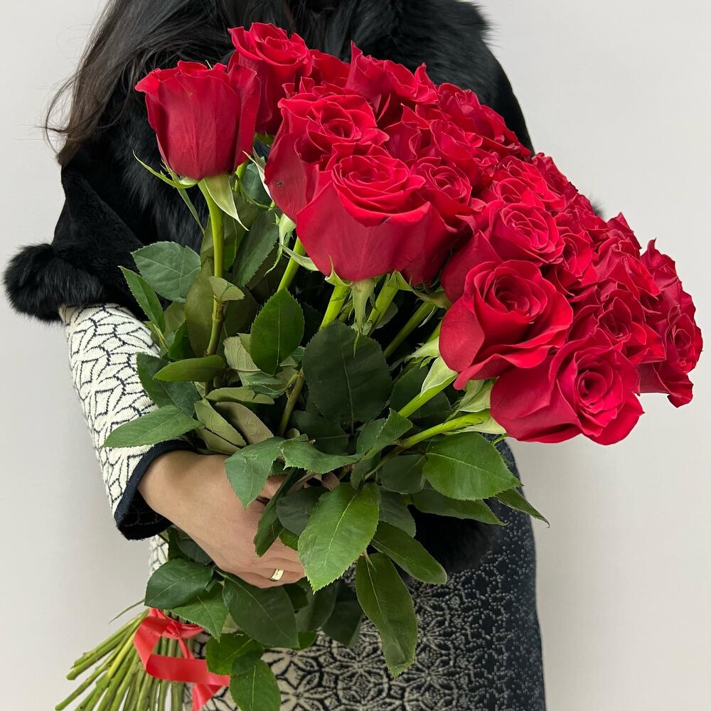 Лента красная – 1 шт.Роза Эквадор – 35 шт.