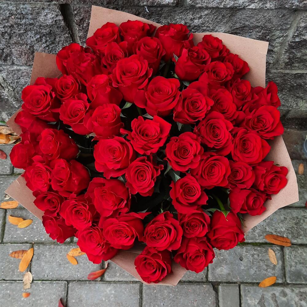 роза (ст.пр- колумбия) – 51 шт.Упаковка крафт – 4 шт.бант (атласная лента) – 1 шт.