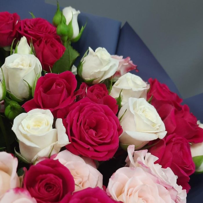 Роза кустовая розовая – 5 шт.Роза кустовая белая – 5 шт.Упаковка дизайнерская – 2 шт.роза кустовая микс – 5 шт.