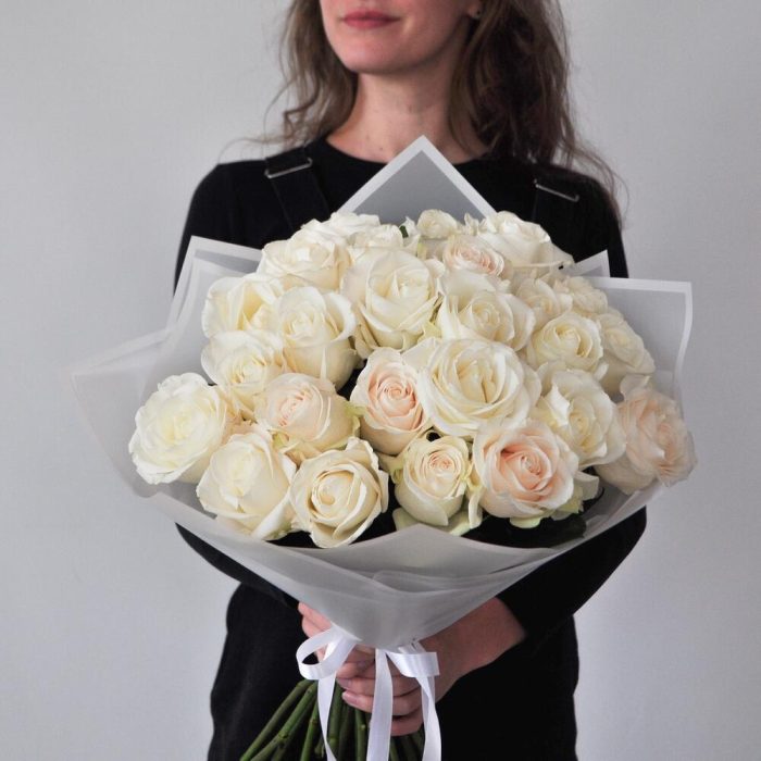 Букет из 25 белых высоких розы