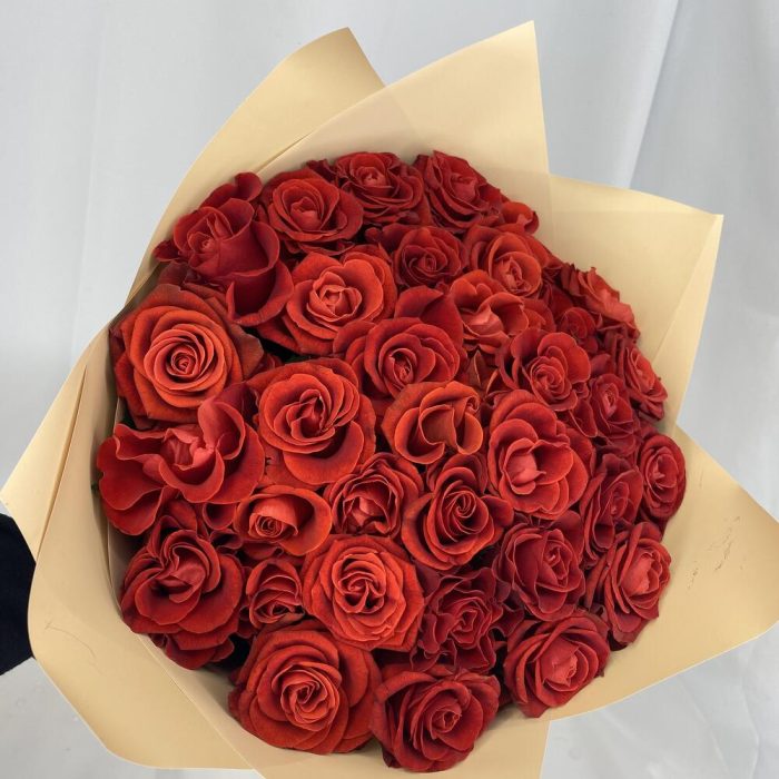 Роза – 35 шт.Упаковка – 3 шт.Атласная лента – 1 шт.