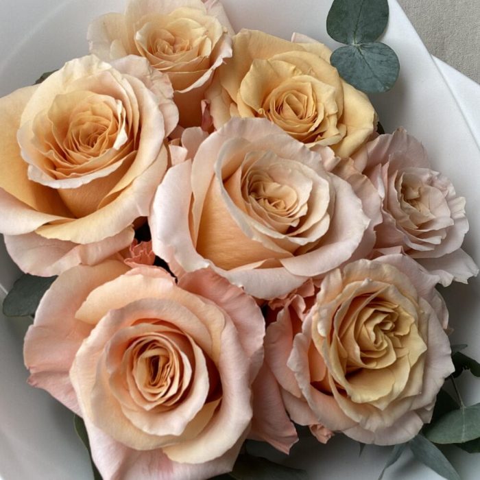 Эвкалипт – 4 шт.Упаковка дизайнерская – 1 шт.Роза шиммер – 7 шт.