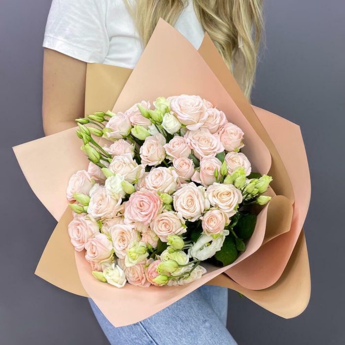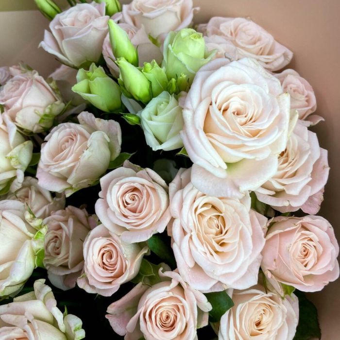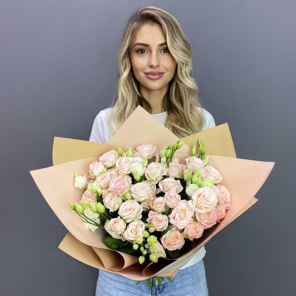 Альстромерии, Гвоздики, Кустовые розы, Лизиантусы, Розы, Хризантемы