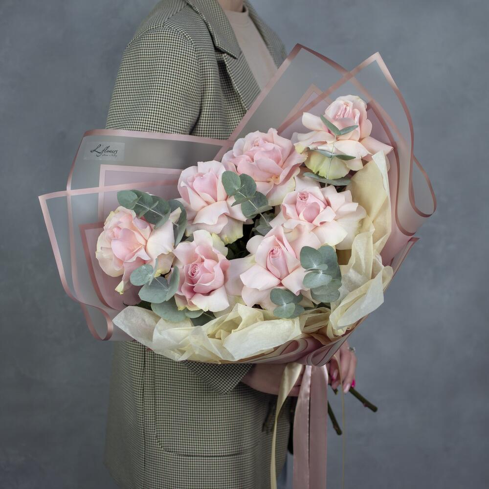Роза французская – 7 шт.Эвкалипт – 2 шт.