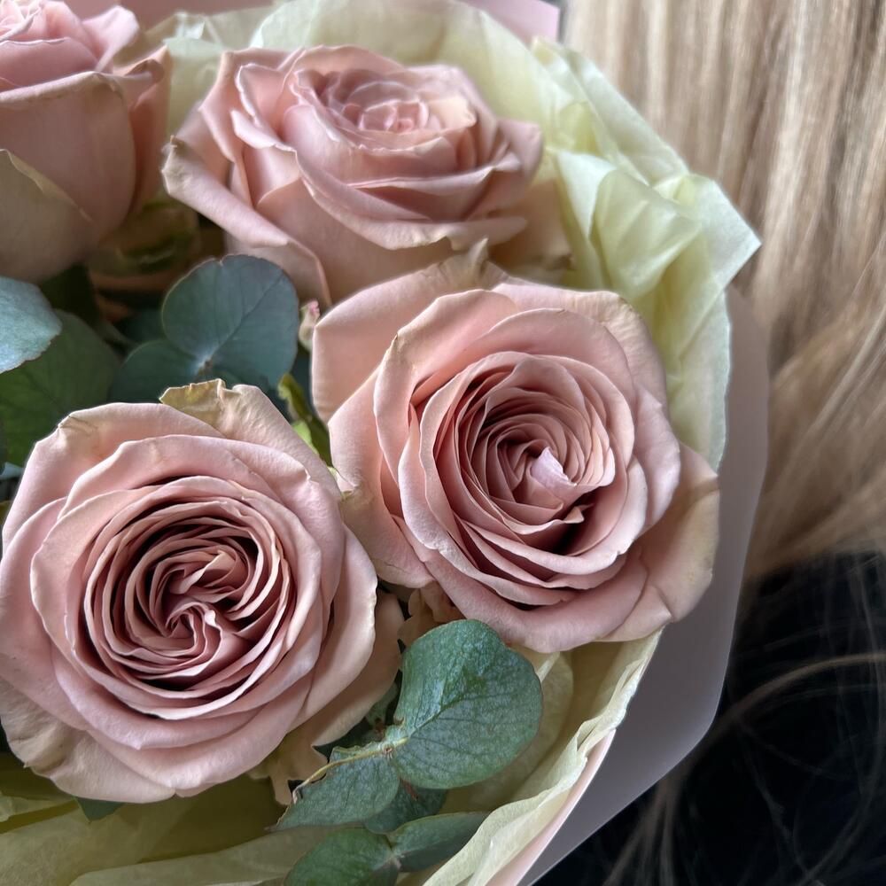 Букет «Пудровая Роза с эвкалиптом»