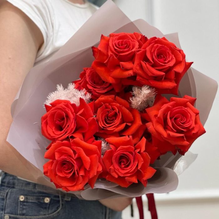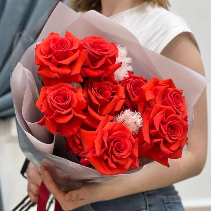 Букет шикарных алых роз 9 шт «Притягательный»