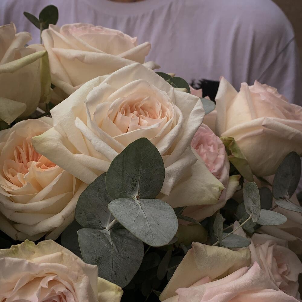 “Эвкалиптическая роскошь” гортензия и пионовидная кустовая роза