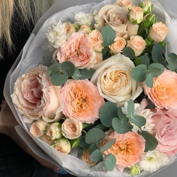 Гвоздики, Кустовые розы, Пионовидные розы, Розы