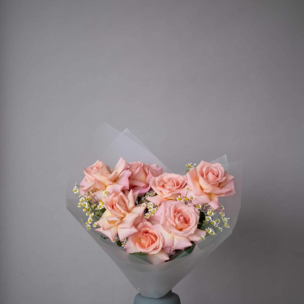 Роза Эквадор – 7 шт.Матрикария – 4 шт.Упаковка дизайнерская – 1 шт.подкормка для срезанных цветов – 1 шт.любовь флориста – 100 шт.записка с вашим текстом – 1 шт.советы по уходу за срезанными цветами – 1 шт.