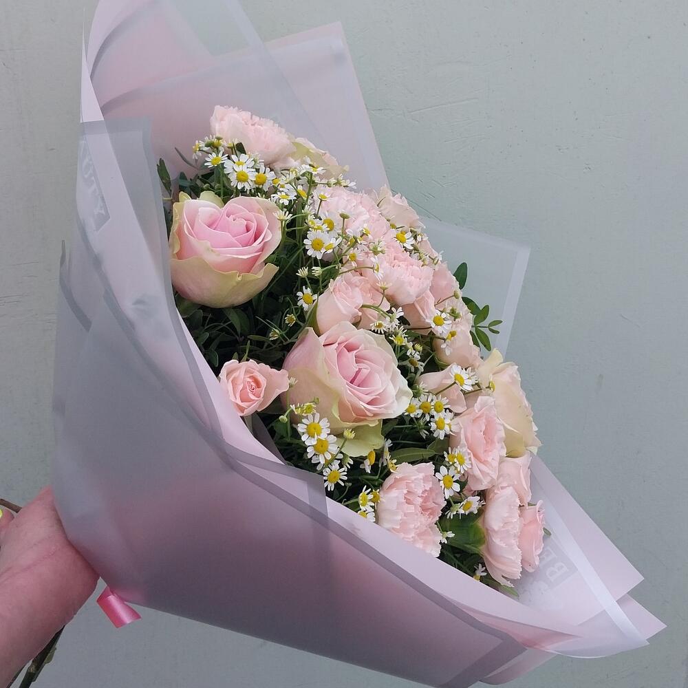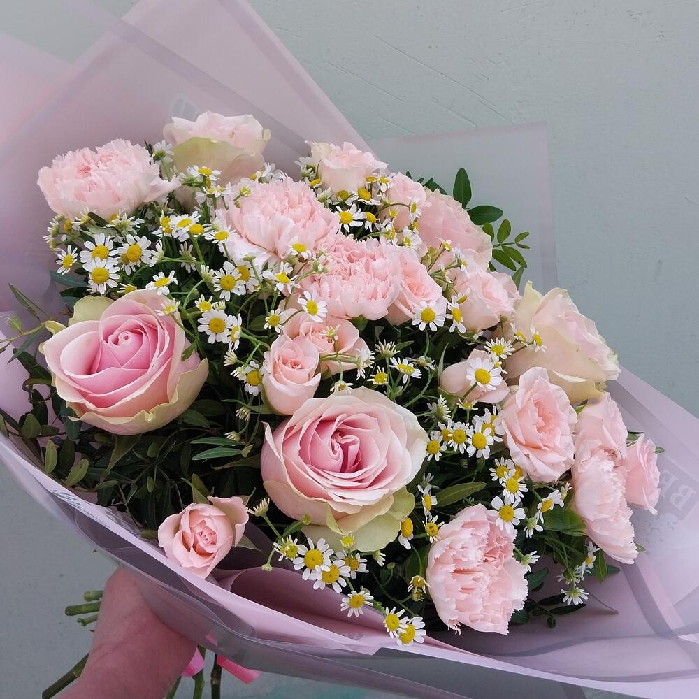 Категории: Гвоздики, Кустовые розы, Розы, Ромашки