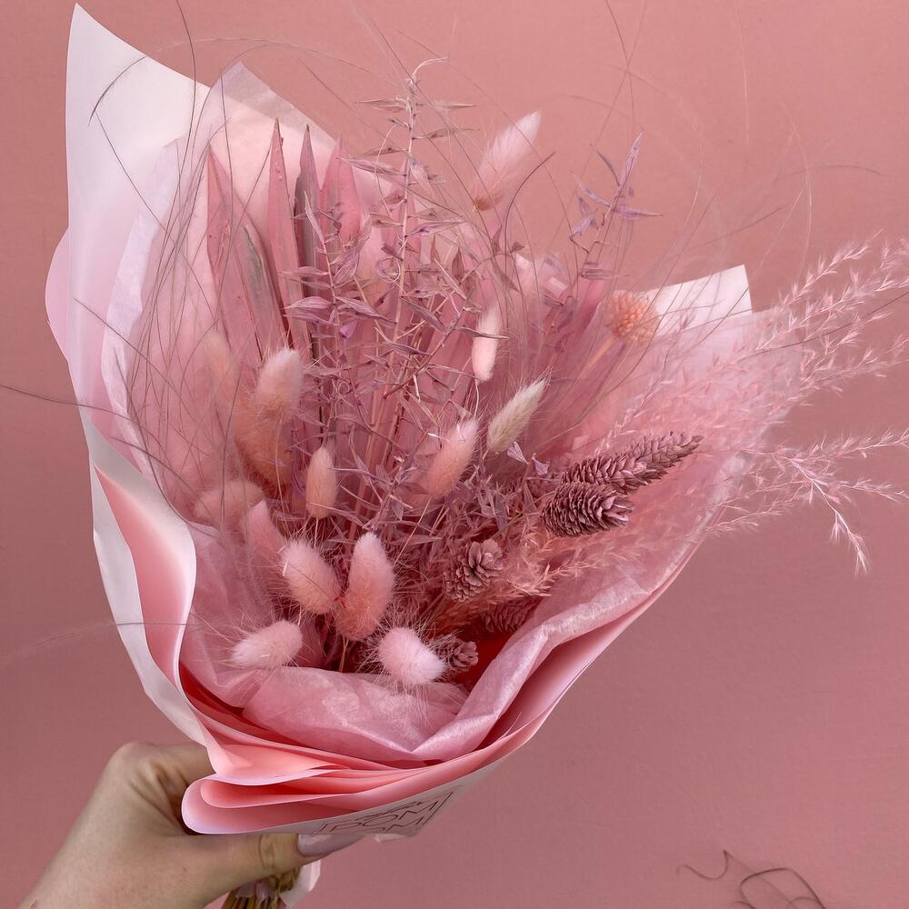 Лагурус – 7 шт.Стифа – 2 шт.Пальма – 1 шт.аурея – 1 шт.иглица – 1 шт.Краспедия – 1 шт.Упаковка дизайнерская – 1 шт.Фаларис – 4 шт.